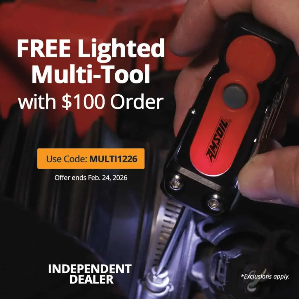 For a limited time, Preferred Customers and online/catalog customers get a free AMSOIL lighted multi-tool with their order of $100 or more when they use code MULTI226 at checkout. The offer runs Feb. 11-24, 2026.